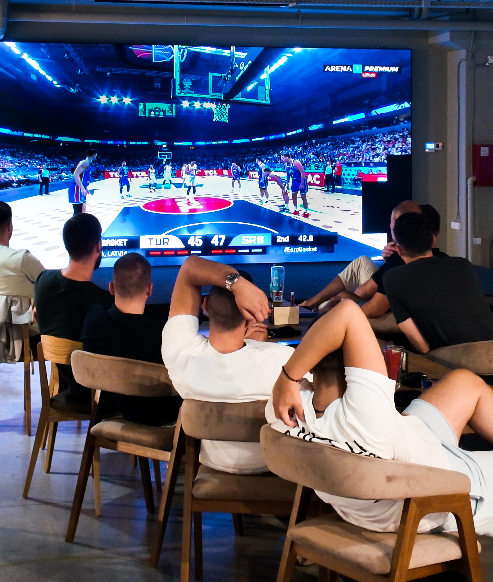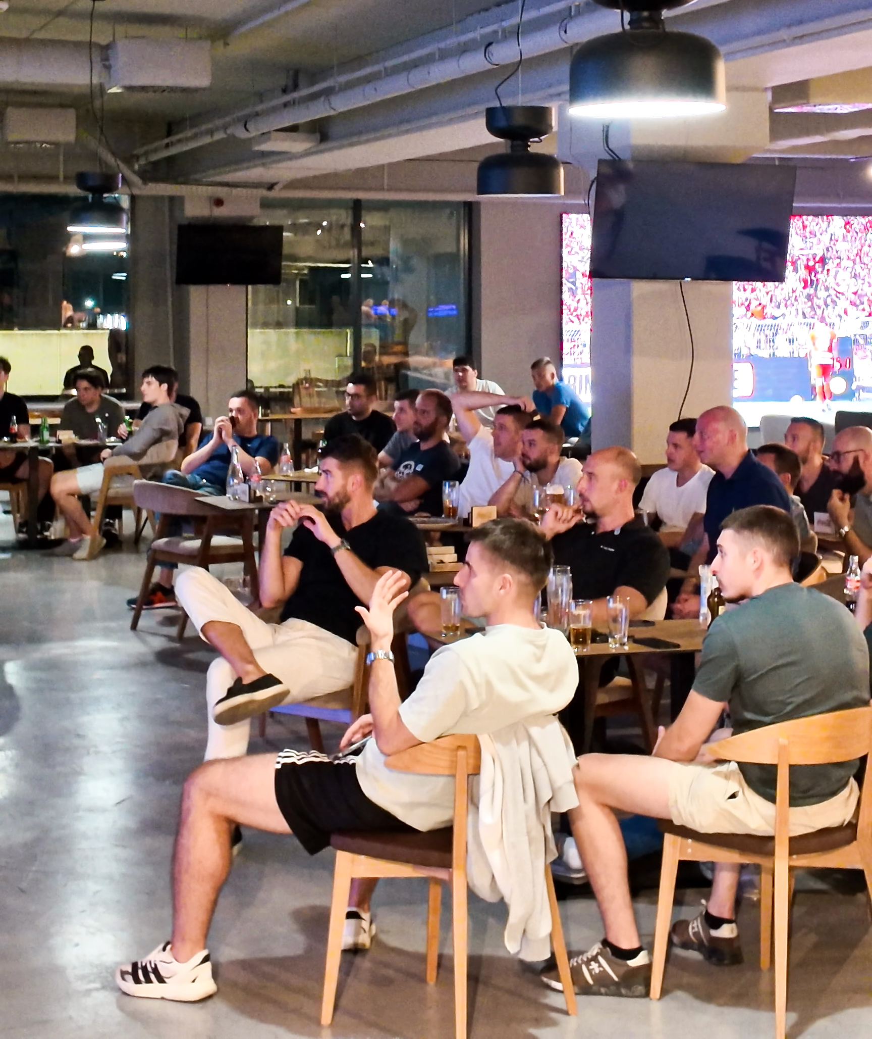 Dva ogromna LED ekrana širine po pet metara pružaju savršenu vidljivost iz svakog ugla. Bilo da ste došli sami, sa prijateljima ili u većem društvu, nema šanse da propustite ključni momenat meča. Kružni šank olakšava pristup piću, a kapacitet od čak 300 mesta znači da ćete uvek biti okruženi istomišljenicima i da slavlje nakon gola nikada ne prolazi tiho.